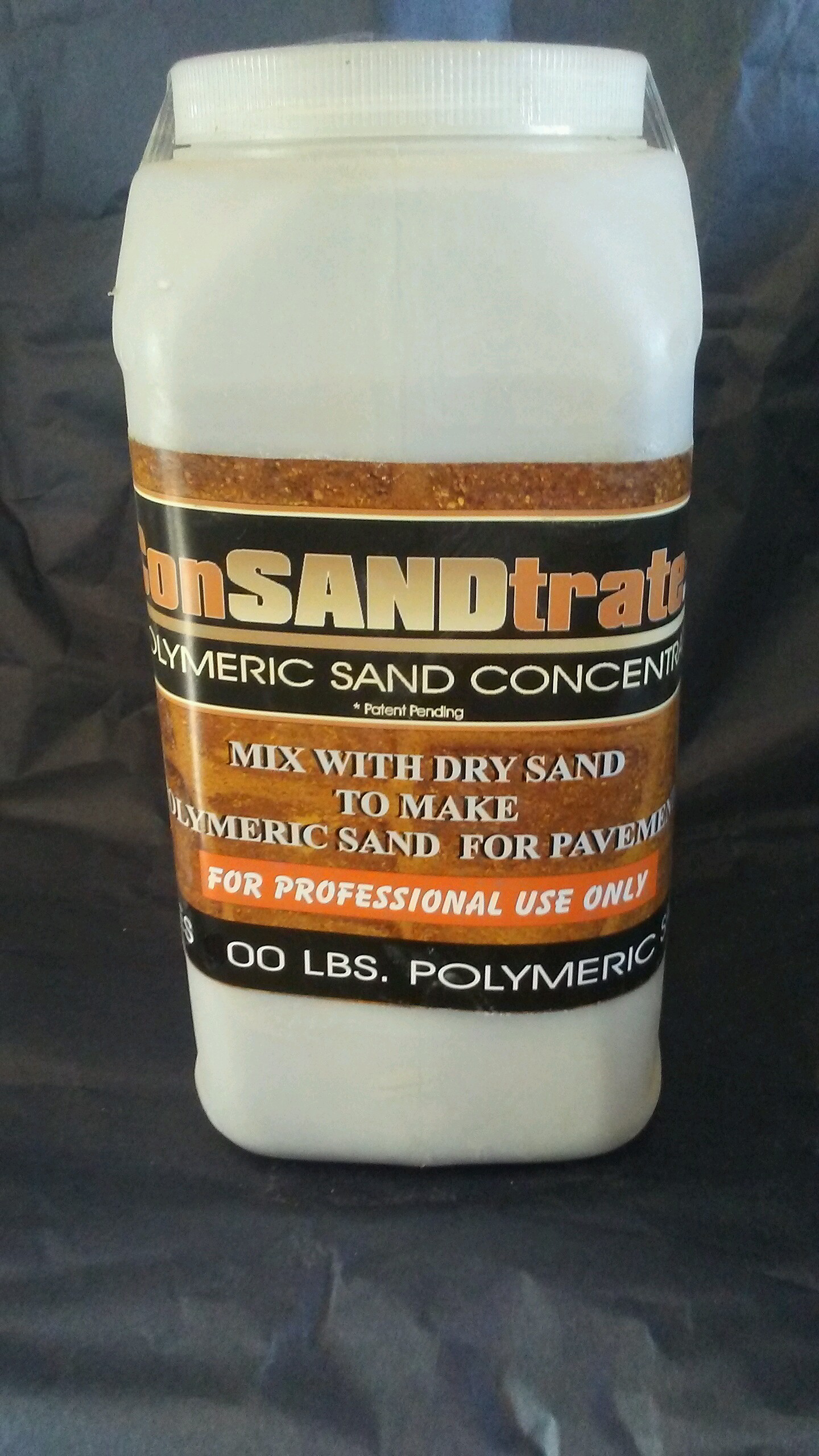 ConSANDtrate™  is a proprietary blend of ploymers, calibrated sands and fillers that, when mixed with local sand, can be used to  fill the joints between pavestones, flagstone, cement slabs and wherever sand, crushed granite or other fillers are used as a filler between for the joints. This sand takes more time to get into the joints, but is also more difficult to wash out. For best performance, blend 1 part ConSANDtrate™  to 10 parts silica sand or masonry sand. For smaller cracks, use slightly less sand to achieve a higher density of binding agent / sand ratio. Sealing the joint or the entire surface area of the slab or pavers (after the polymeric sand has cured for at least 48 hours) will add another layer of protection for your particular project.