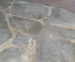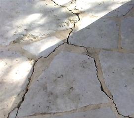 Cracks in stone patio before & after installing dry crack filler.